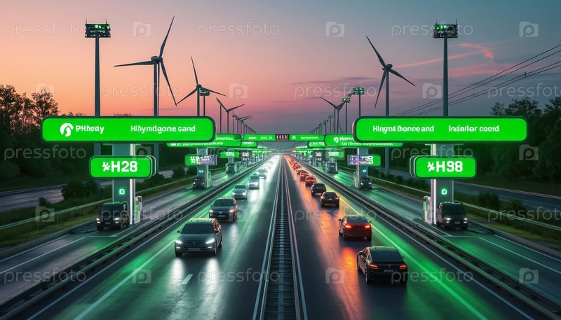 Автомагистрали будущего с водородными грузовиками и автомобилями на топливных элементах, углеродно-отрицательной инфраструктурой