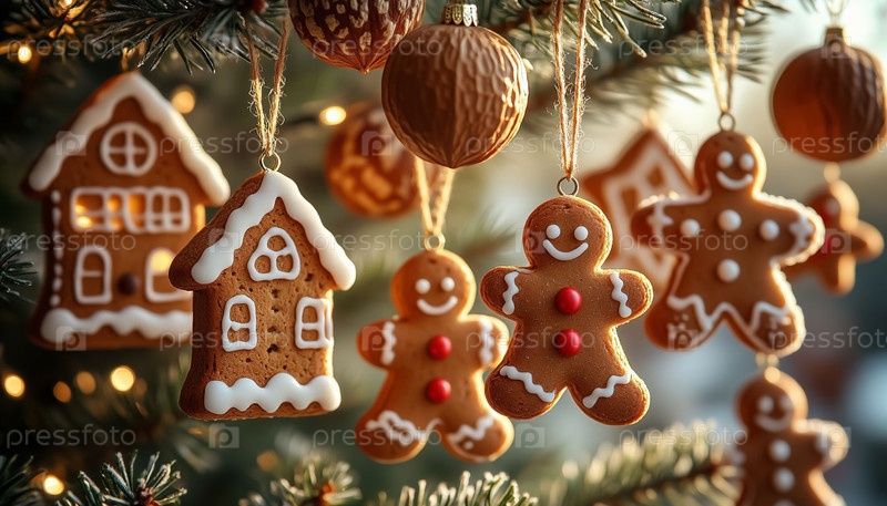 Праздничный Имбирный Хлеб Человек Дерево Орнамент Изолированная