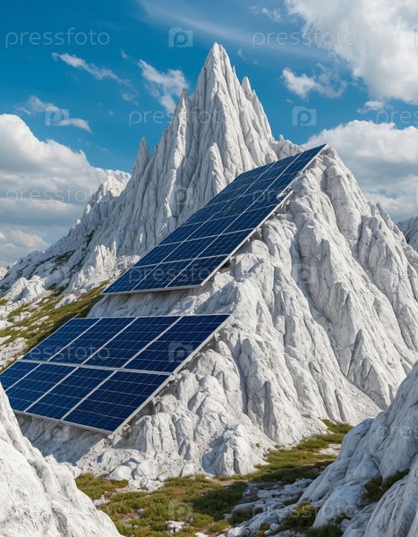 Солнечные батареи установлены в горах.Чистая зеленая энергия