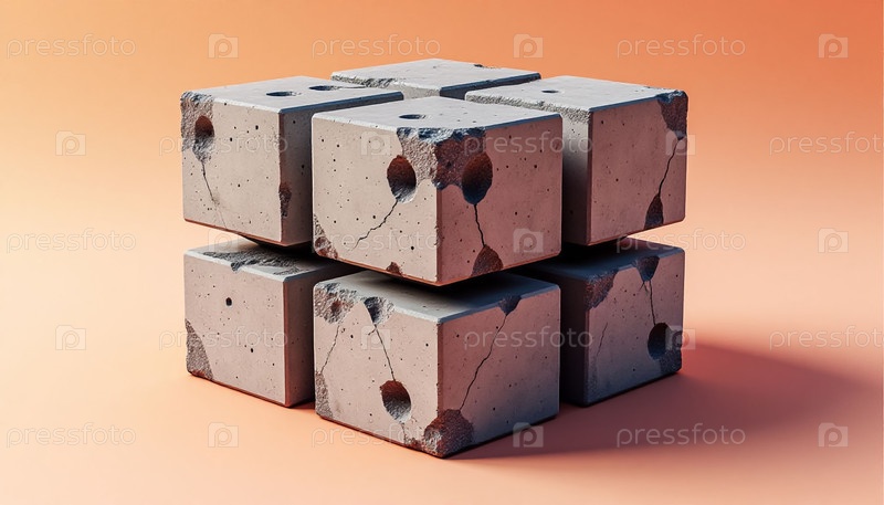 Бетонный четырехкратный куб на бежевом пастеле