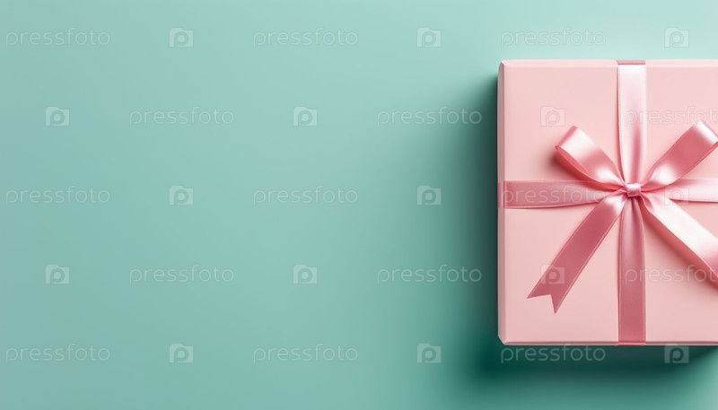 Минималистский пастельный розовый подарочный ящик на ментовом градиентном фоне