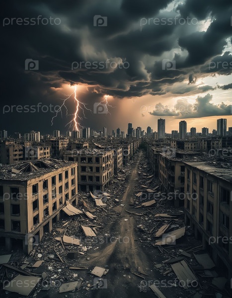 Апокалиптический городской пейзаж драматическое разрушение руин