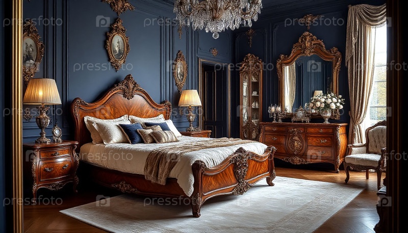 Роскошный темно-барокковый интерьер спальни