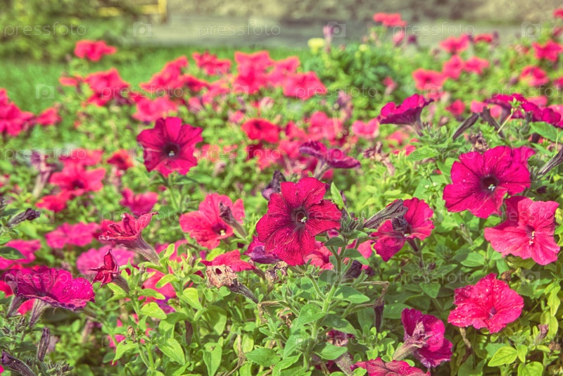 Красочные цветы петунии расцветают в саду
