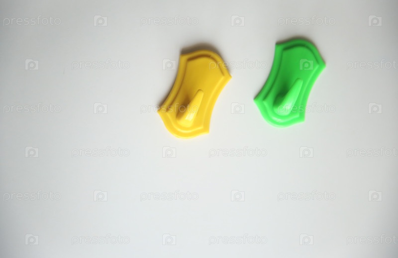 Желтый и зеленый крючки для полотенец. Концепция обустройства квартиры и быта
