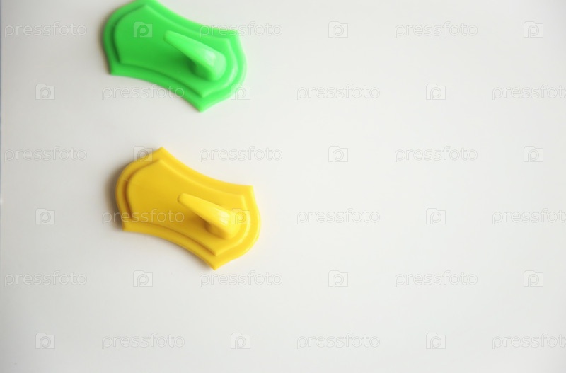 Желтый и зеленый крючки для полотенец. Концепция обустройства квартиры и быта