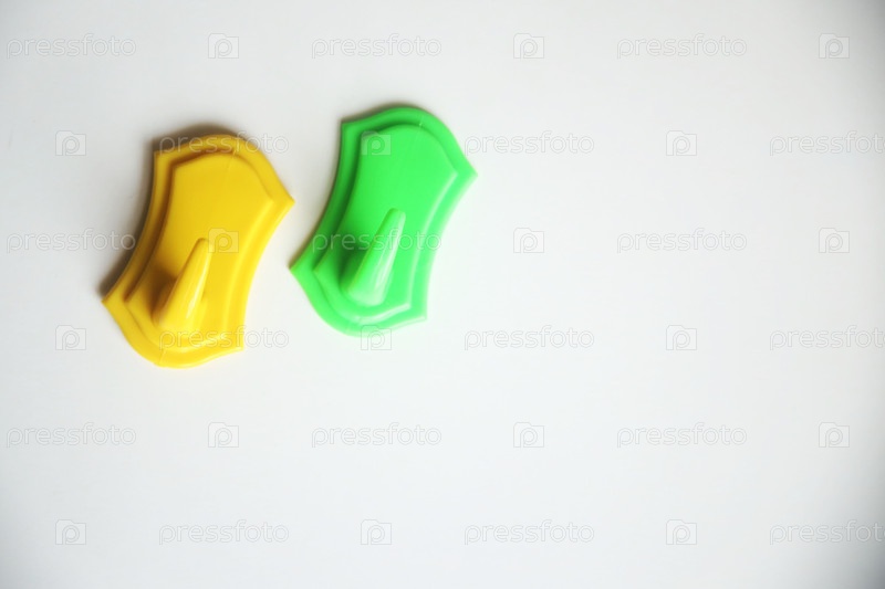 Желтый и зеленый крючки для полотенец. Концепция обустройства квартиры и быта