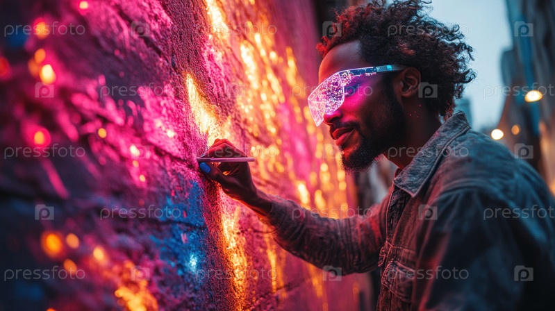 Футуристический уличный художник создает неоновые граффити