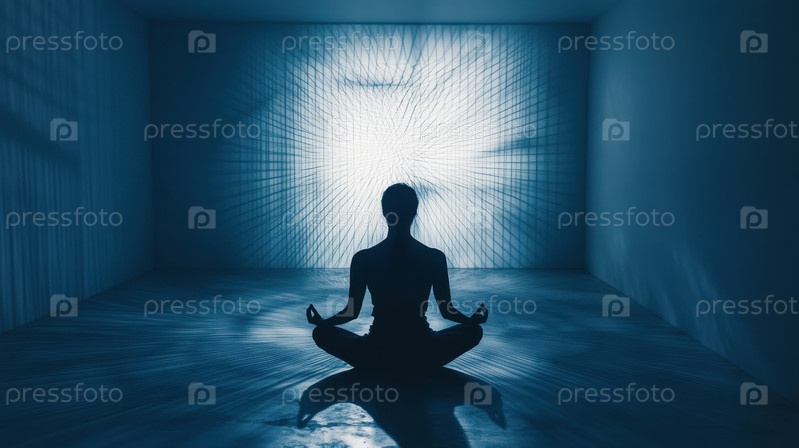 Силуэт медитации полнолуние тени сюрреалистической ночи