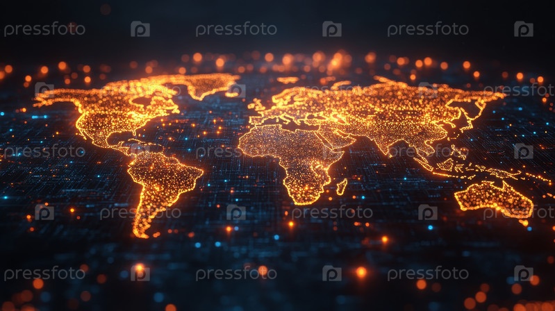Яркая цифровая карта мира с футуристическими соединениями