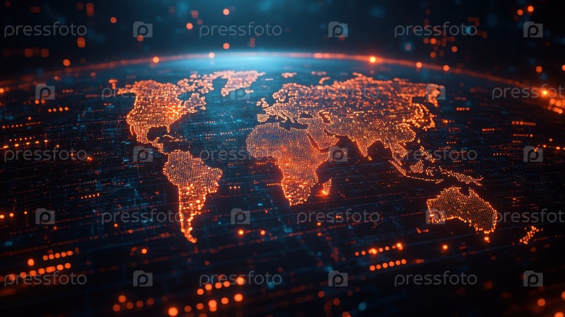 Яркая цифровая карта мира с футуристическими соединениями