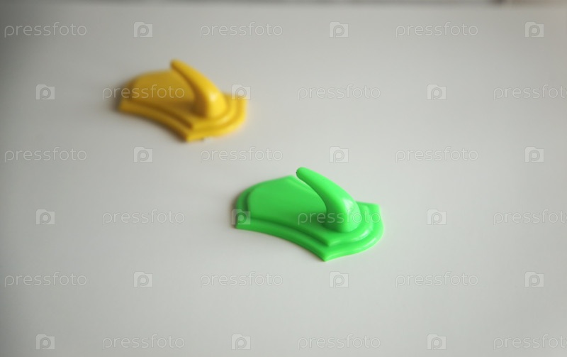 Желтый и зеленый крючки для полотенец. Концепция обустройства квартиры и быта