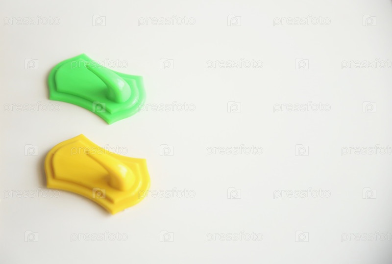 Желтый и зеленый крючки для полотенец. Концепция обустройства квартиры и быта