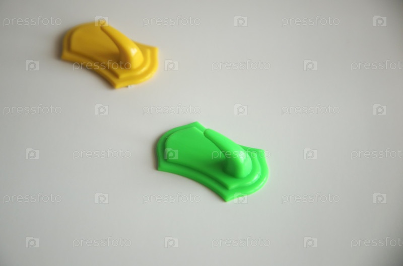 Желтый и зеленый крючки для полотенец. Концепция обустройства квартиры и быта