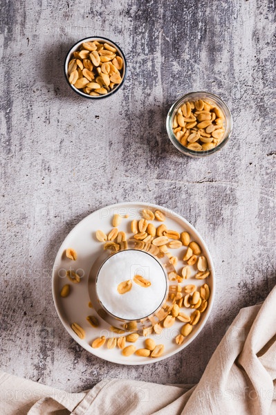 Вкусный кофе с арахисовым маслом в стакане на столе и вертикальный вид