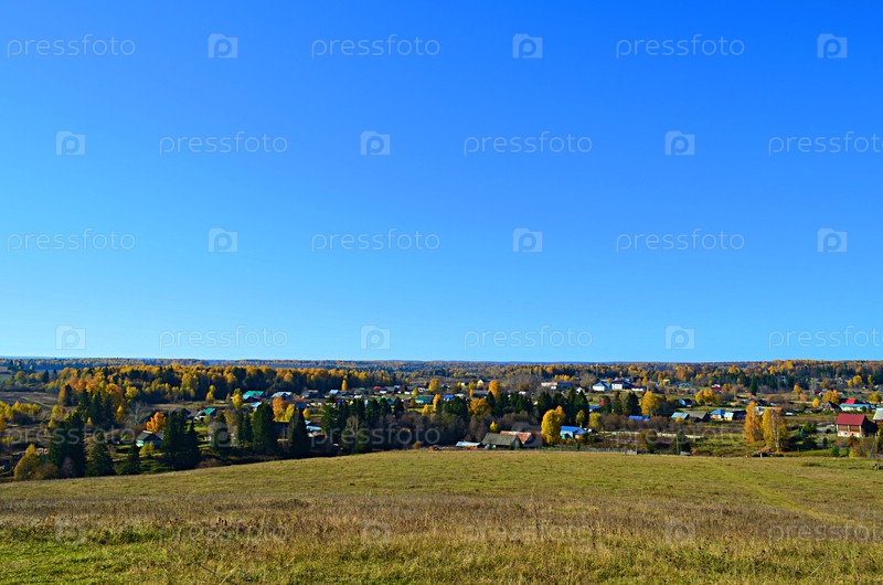 Осенний пейзаж. Вид на село с горы