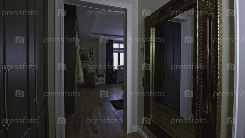 Зеркало в роскошном коридоре квартиры. креативное. роскошные детали дорогих интерьеров в роскошных апартаментах. экскурсия по комнате дорогостоящего номера