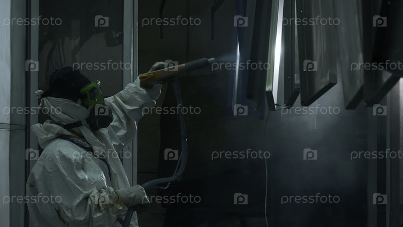 Рабочий покрывает металлическую часть порошковым покрытием с помощью распылительного пистолета.Креативное Покрытие порошком металлопродуктов, заводское порошковое покрытие металлических конструкций