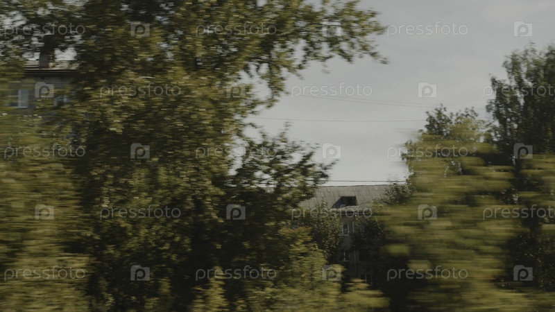 Вид из движущегося транспортного средства на старый город с зелеными деревьями. Скриншоты. Поездка на машине с видом на старый город летом. Старые жилые здания в городе со зелеными деревьями летом