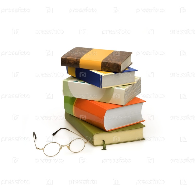 Куча книг в цветных обложках с белыми листами, изолированными на белом фоне