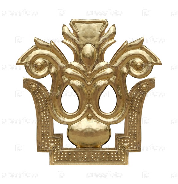 Золотой декоративный элемент с цветочным узором, изолированным на белом фоне