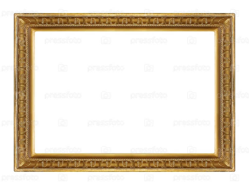 Золотая рама для картин, зеркал или фотографии изолированной на белом фоне