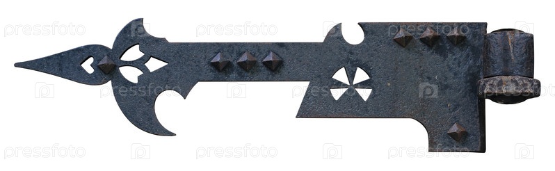 Древняя дверная петля изолирована на белом фоне. элемент дизайна с резкой дорожкой