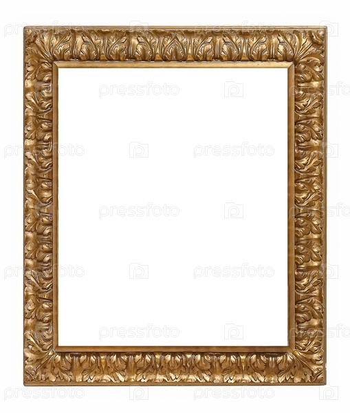Золотая рама для картин, зеркал или фотографии изолированной на белом фоне
