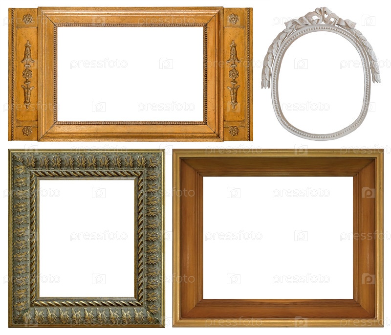 Набор деревянных рамок для картин, зеркал или фотографий изолированный на белом фоне