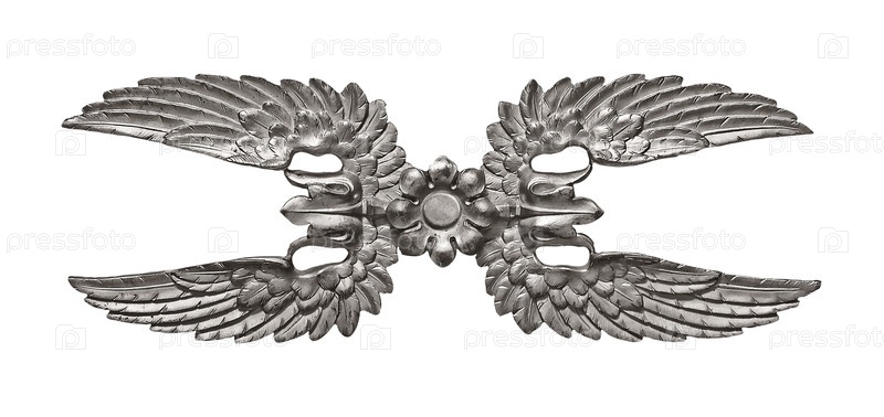 Бронзовые мифические крылья, изолированные на белом фоне