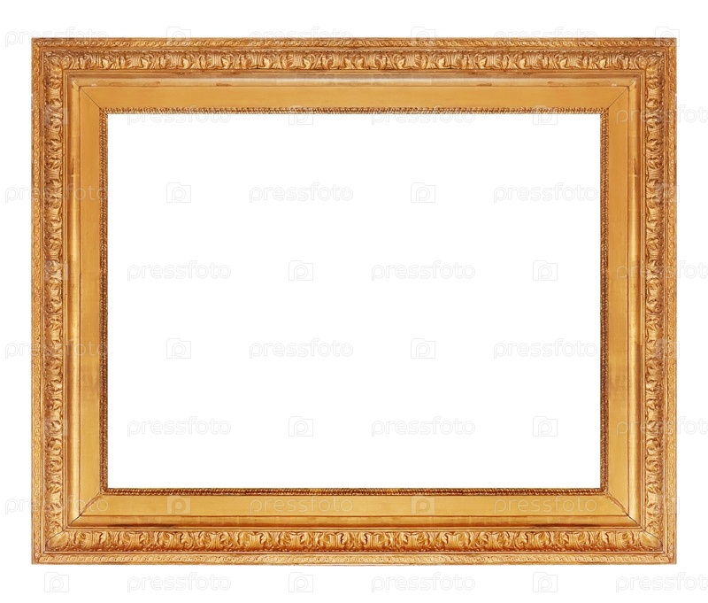 Золотая рама для картин, зеркал или фотографии изолированной на белом фоне