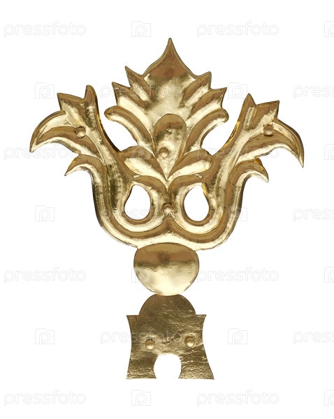 Золотой декоративный элемент с цветочным узором, изолированным на белом фоне