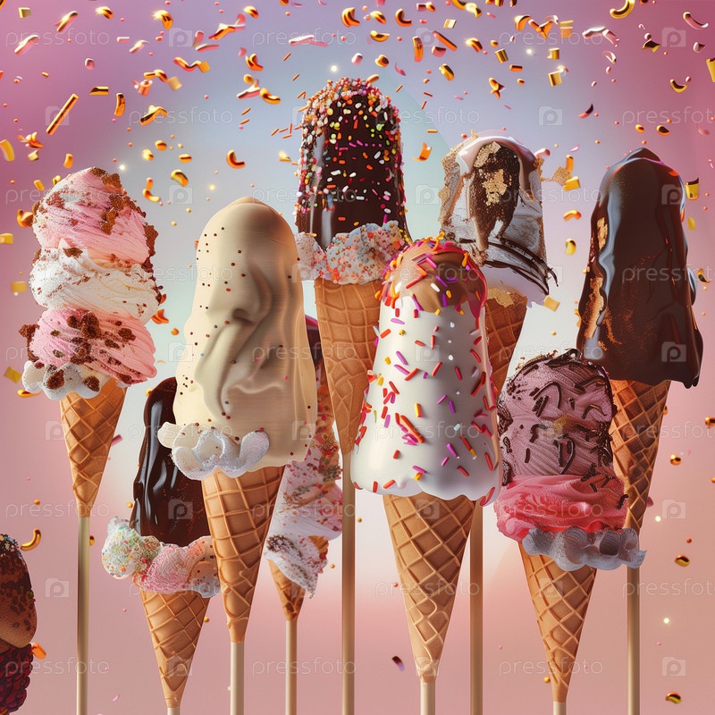 Много вкусного и красивого мороженого. летний десерт. плакат, меню
