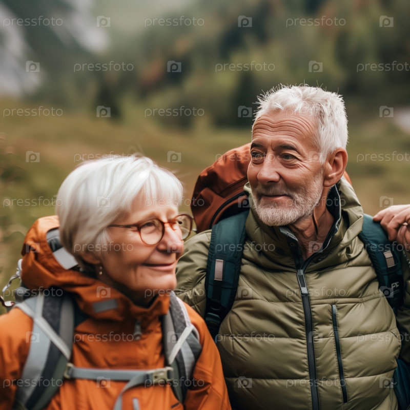 Старшая пара ходит в горы