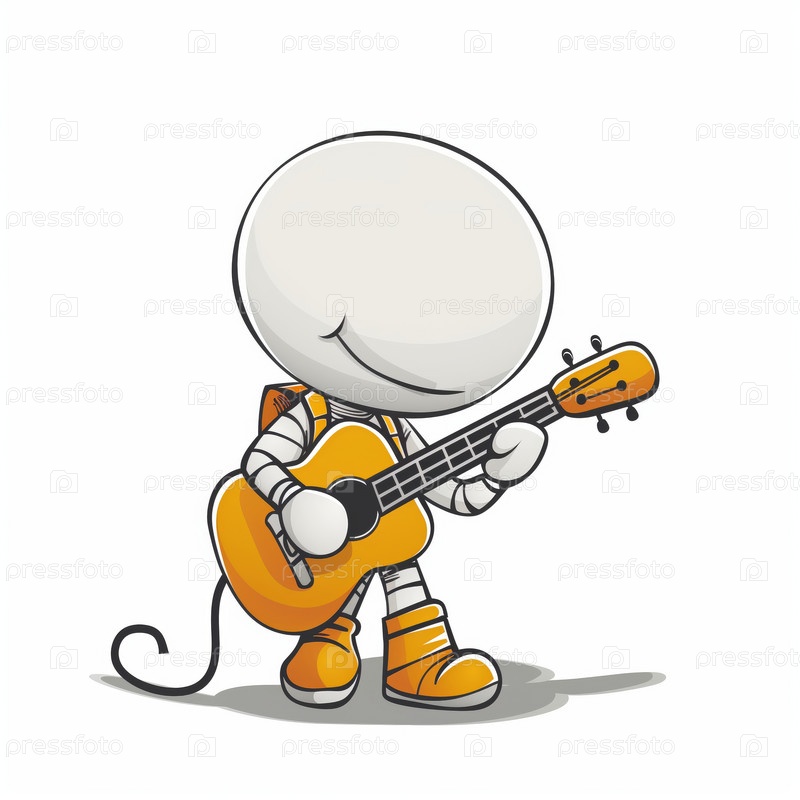 Stickman играет на гитаре, изолированной на белом фоне