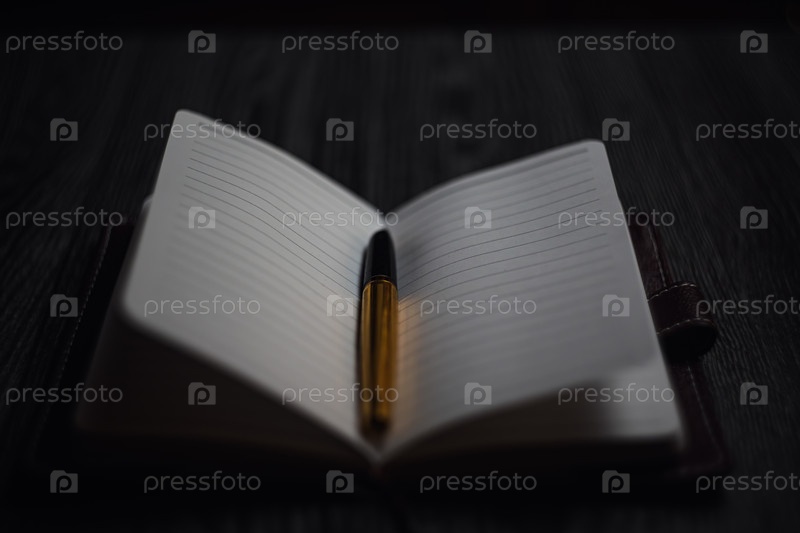 Субъект съемки - блокнот и золотая ручка