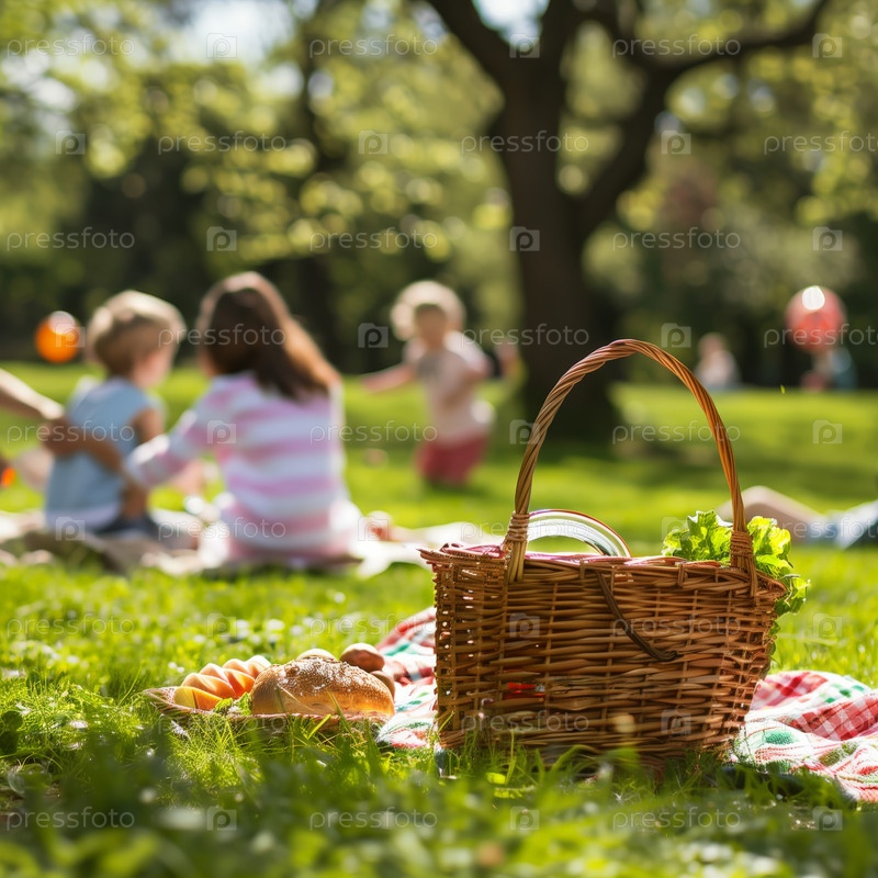 Семья проводит пикник в парке
