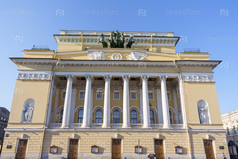 Неоклассическое здание театра с колоннами и скульптурой колесницы