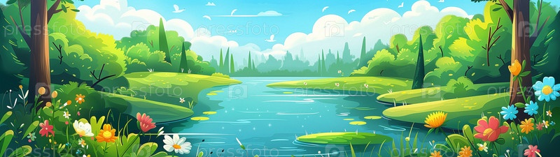 Большоформатный фон с весенне-летним пейзажем.Пробуждение Природы