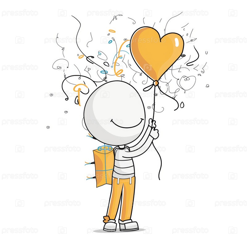 Стикмен держит шарики с конфетти, изолированные на белом фоне