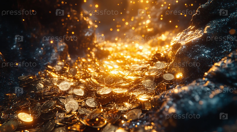Светлая сокровищница золотых монет в пещере