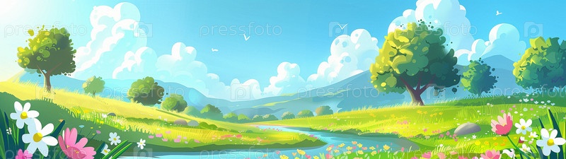 Большоформатный фон с весенне-летним пейзажем.Пробуждение Природы