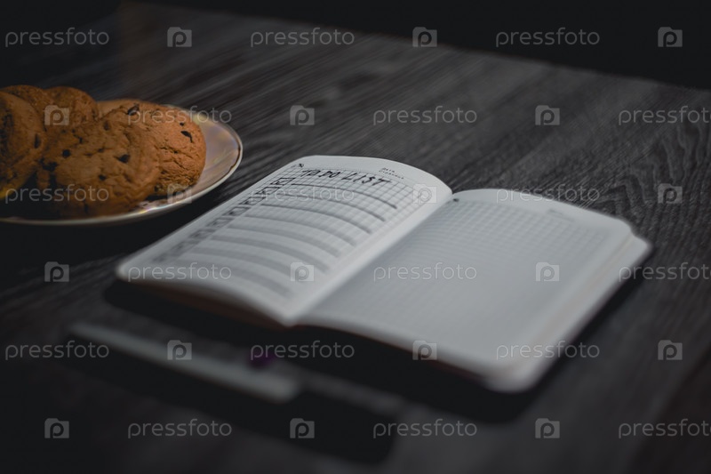 Ноутбук со списком планов и тарелкой печенья
