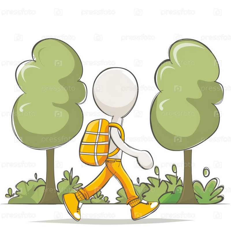 Stickman ходит по парку, изолированный на белом фоне
