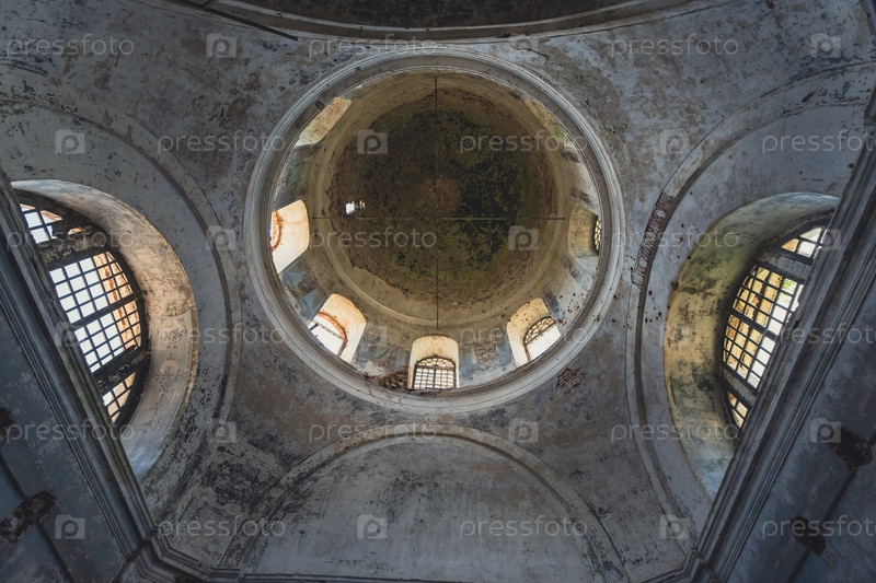 Интерьер заброшенной церкви с разлагающимися стенами