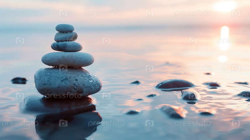 Сбалансированные камни с цветом в спокойной водной обстановке