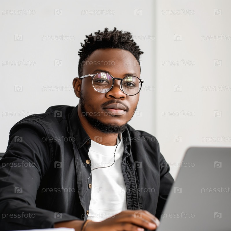 Афроамериканский программист, работающий за столом