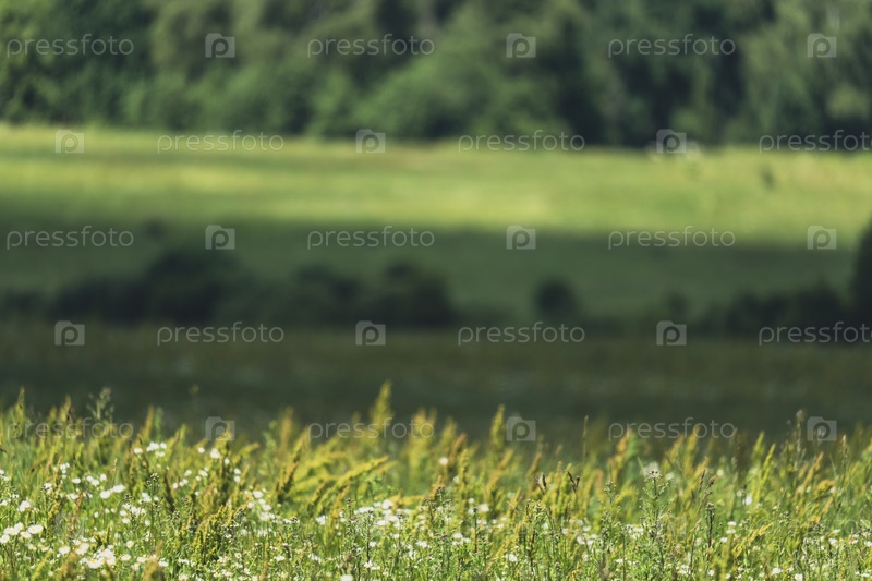 Ливни с дикими цветами и размытым лесом на заднем плане