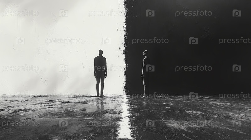 Две фигуры, разделенные черно-белым делением