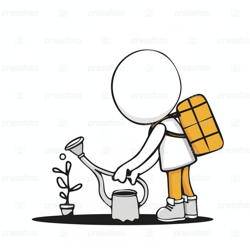 Стикмен поливает растение баночкой